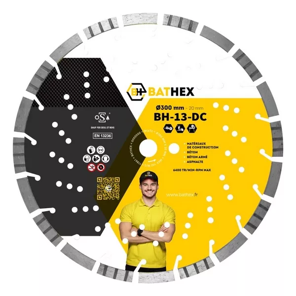 Le disque diamant 350 mm BH-13-DC est conçu pour offrir une grande vitesse de coupe, une polyvalence exceptionnelle et une durabilité professionnelle. Grâce à sa technologie de segments crénelés alternés avec des segments plats, il assure un rendement optimal sur les matériaux de construction les plus exigeants.