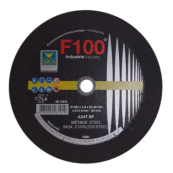 DISQUE METAUX INOX PLAT F100 Ø 350 x 2.8 x 25 MM