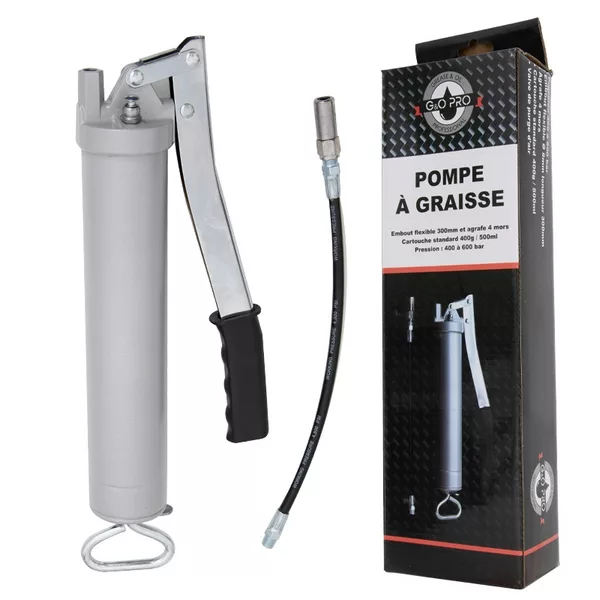 La pompe à graisse 500 ml est conçue pour assurer un graissage précis, puissant et fiable des équipements mécaniques. Compatible avec les cartouches standards 500 ml / 400 g, elle est équipée d’un flexible haute pression et d’une agrafe hydraulique 4 mors pour un maintien sûr sur les graisseurs.